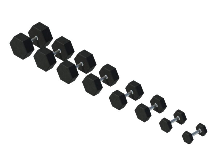 Gym dumbbell Revit family with hexagon-shaped weight plates designed for fitness, wellness, or recreation facility modeling. It provides accurate geometry and flexible parameters for integration into layout projects for sports facilities.