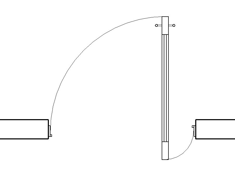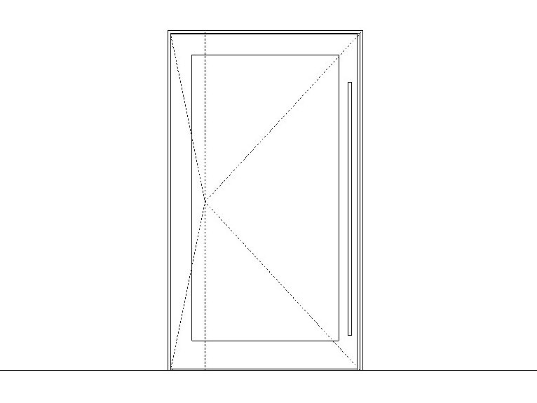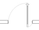 Pivot door Revit family with glass panel. Parametric door size, pivot location, projection swing angle, jamb thickness, door stop size, pull handle location, and materials, fully adjustable for door schedules.