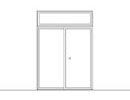 The family includes adjustable parameters for width, height, frame thickness, panel offset, and transom height, allowing easy customization to match various design requirements. Suitable for use in exterior wall assemblies, patios, or balcony openings.